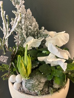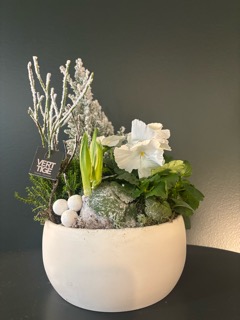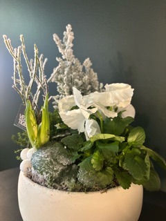 Cette coupe de plantes de saison, sublimée par la présence délicate de la jacinthe, évoque toute la fraîcheur et la magie des fêtes de fin d’année. Parfumée et lumineuse, la jacinthe s’accompagne harmonieusement de végétaux soigneusement sélectionnés pour créer une composition festive et naturelle. Présentée dans un contenant décoratif pouvant varier selon les disponibilités, toujours choisi dans un esprit de Noël, cette coupe apporte une touche végétale élégante et chaleureuse à vos intérieurs et extérieurs. Une création idéale pour offrir ou pour embellir vos espaces pendant les fêtes.